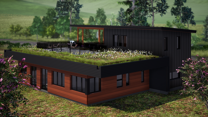 Plan d'architecture - Superbe maison écologique avec toit végétalisé