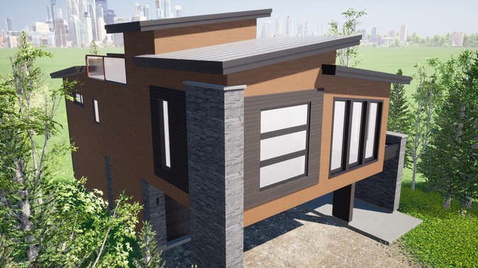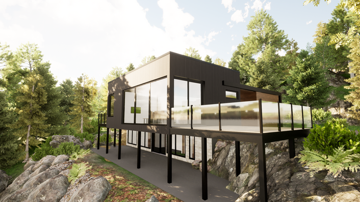 Plan d'architecture signé Conspectek pour une sublime maison construite en Timber Frame avec un design unique, inspiré par les clients.